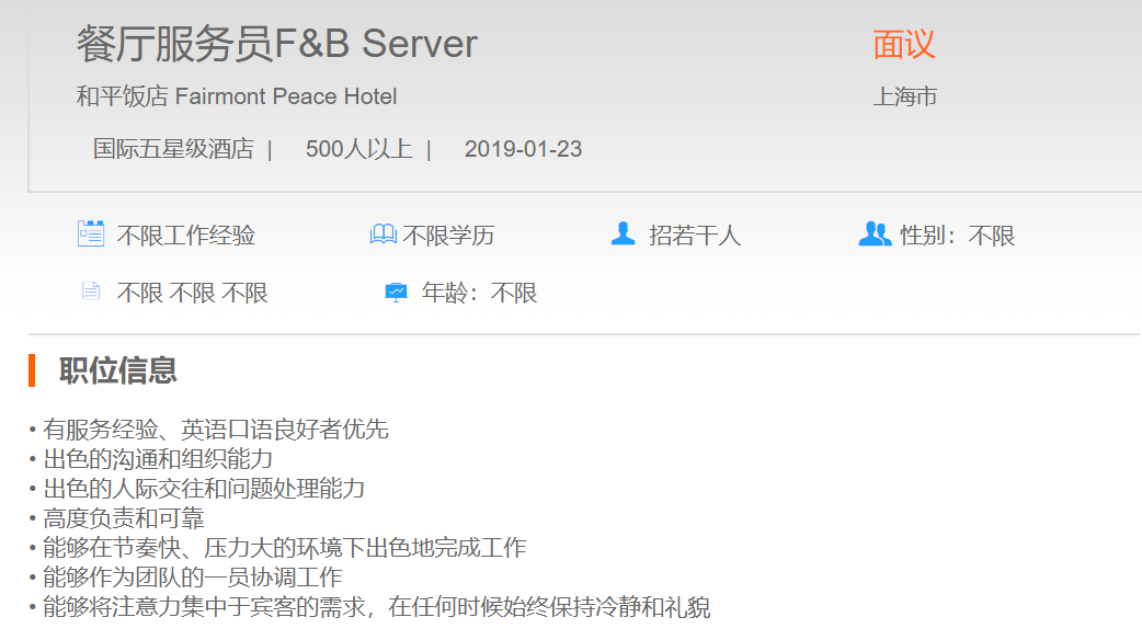 和平饭店餐厅服务员