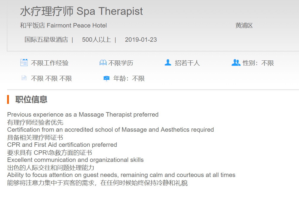 和平饭店水疗理疗师