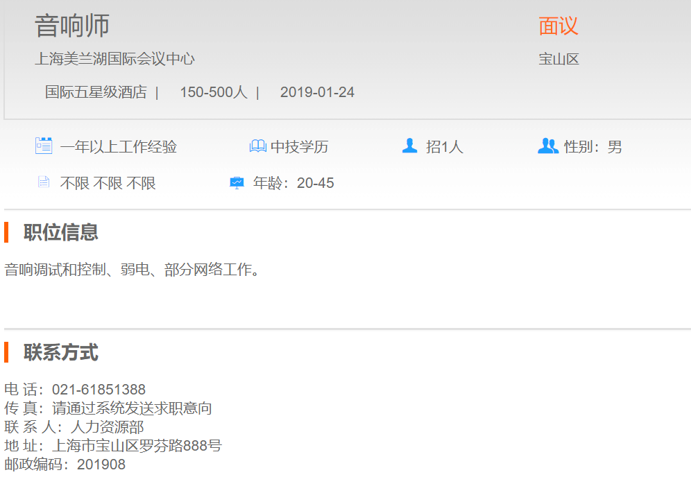 上海美兰湖高尔夫度假酒店音响师