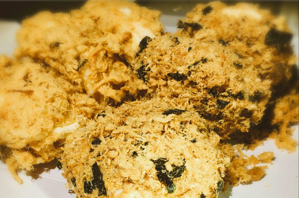 沈大成的青团,蛋黄肉松的内馅,蛋黄的颜色就让人食指大动,金灿灿的蛋黄配上肉松,再加上软糯的青团皮,一口咬下去艾青的香味弥漫口中,回味悠长。