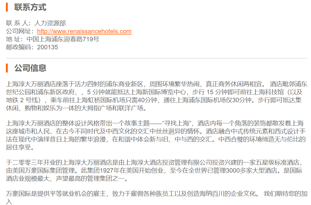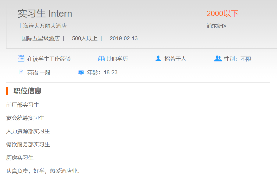 上海淳大万丽酒店实习生
