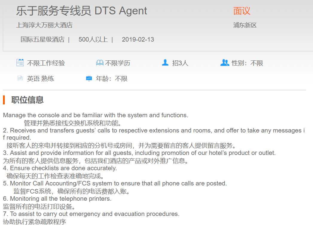 上海淳大万丽酒店乐于服务专线员