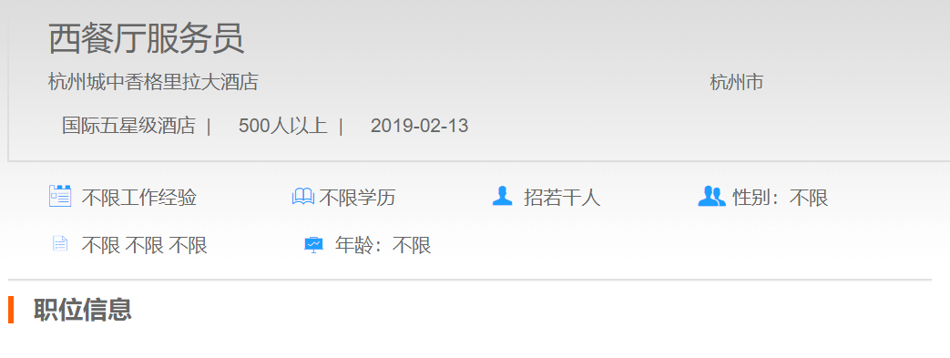 杭州城中香格里拉大酒店西餐厅服务员