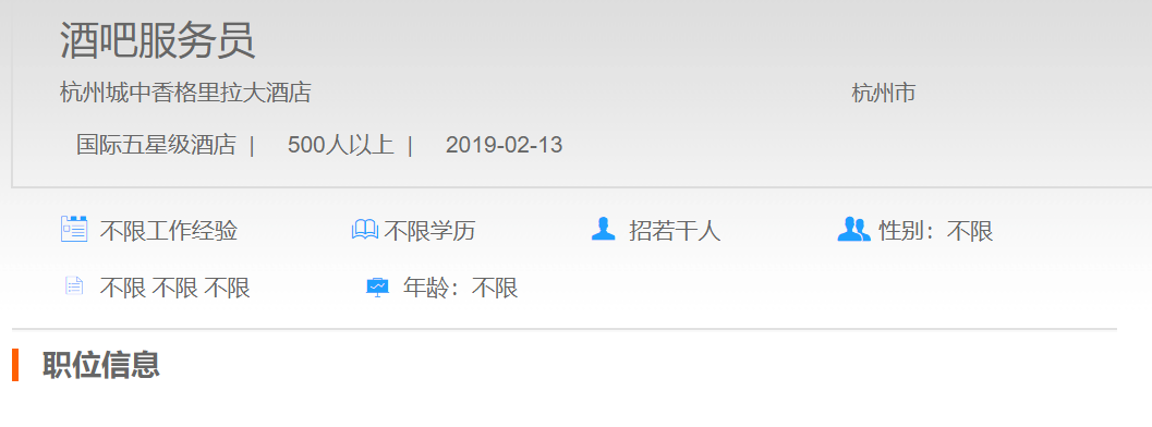 杭州城中香格里拉大酒店酒吧服务员