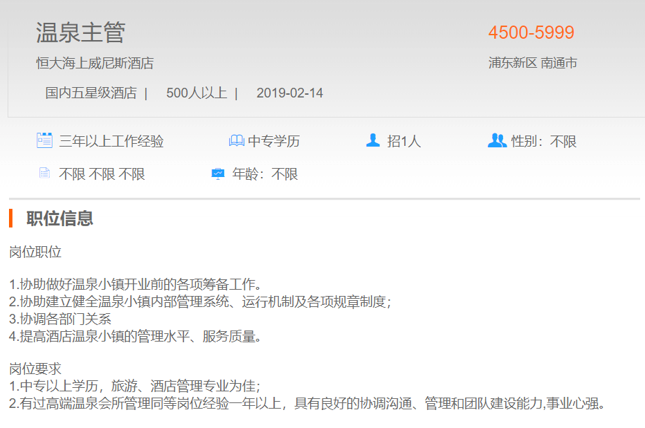 恒大海上威尼斯酒店温泉主管