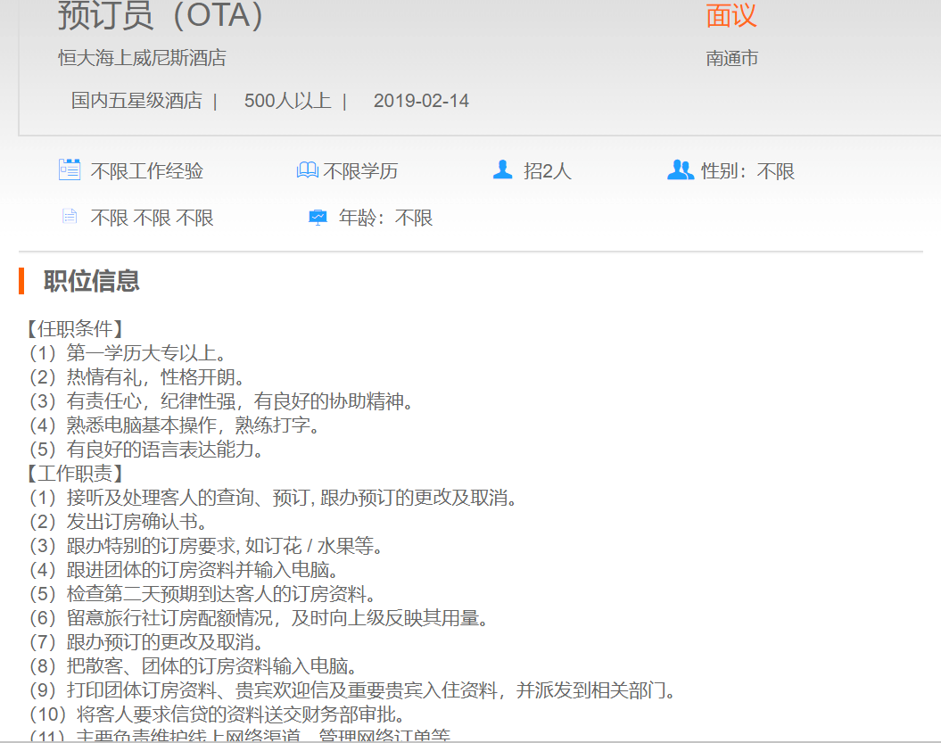 恒大海上威尼斯酒店预订员