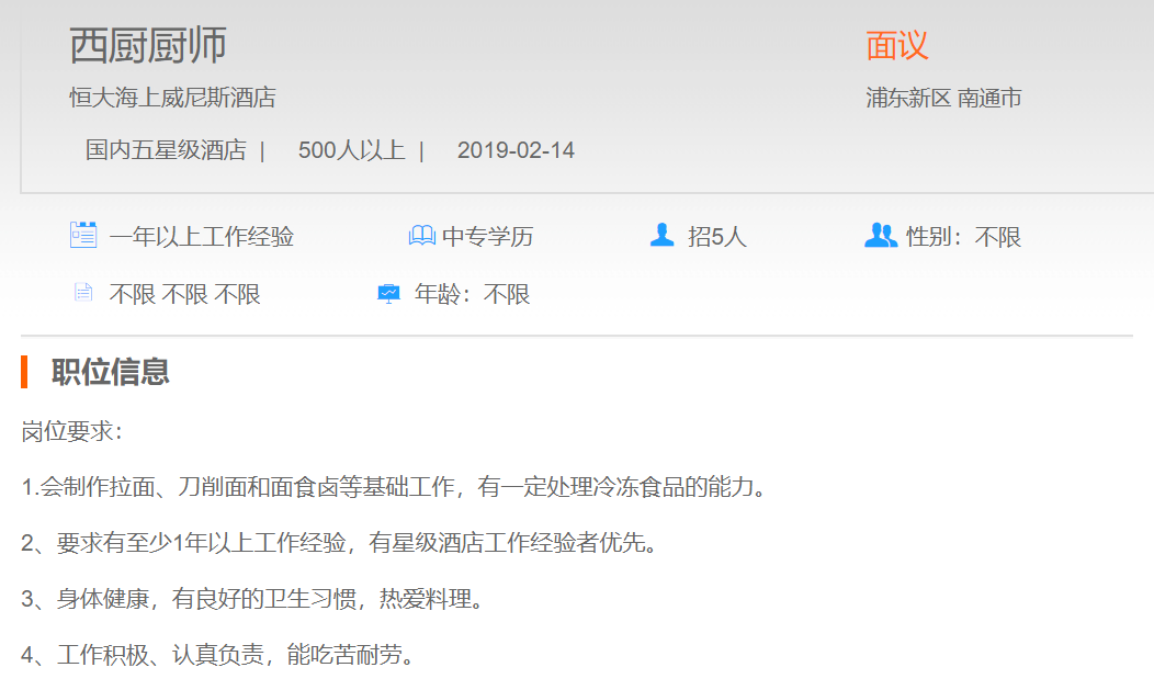 恒大海上威尼斯酒店西厨厨师