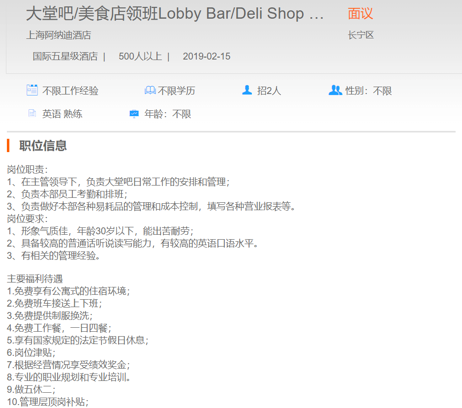 上海阿纳迪酒店大堂吧|美食店领班