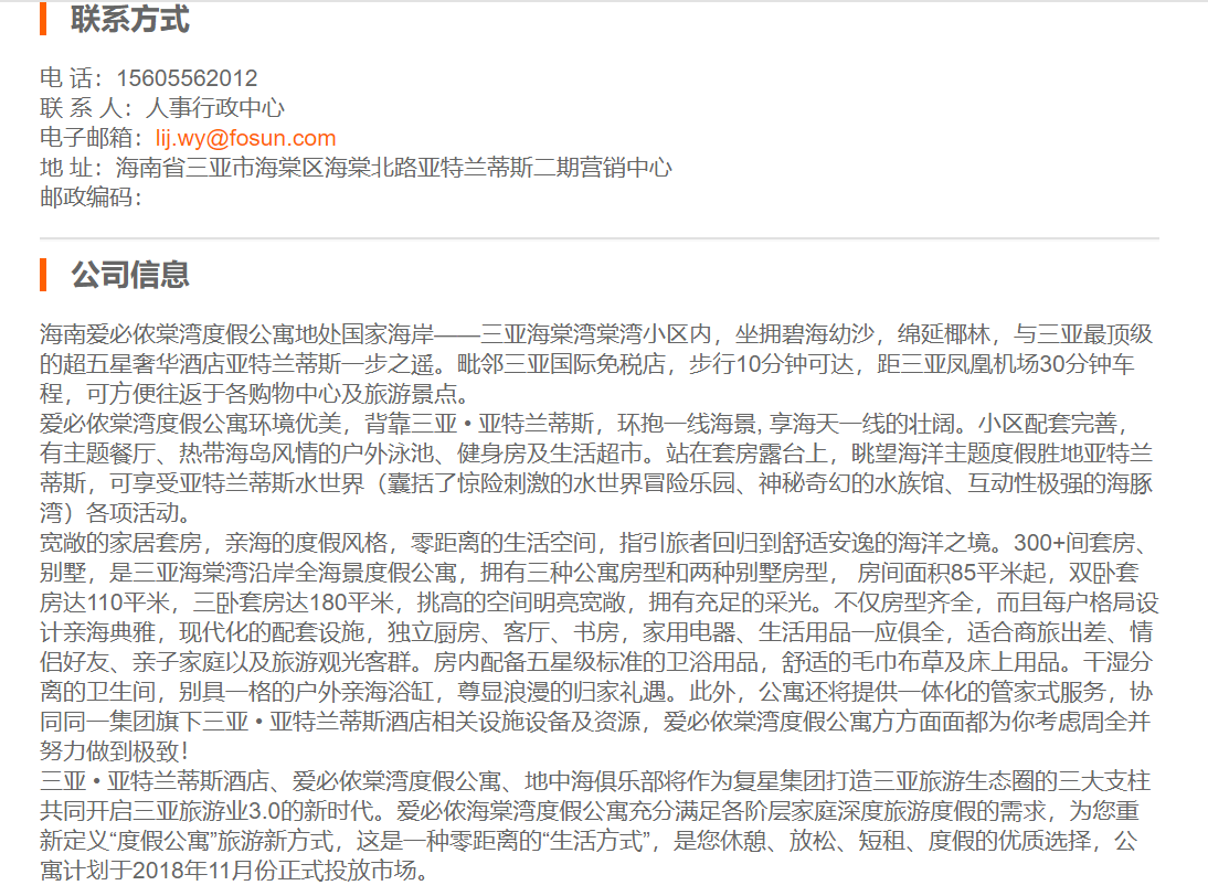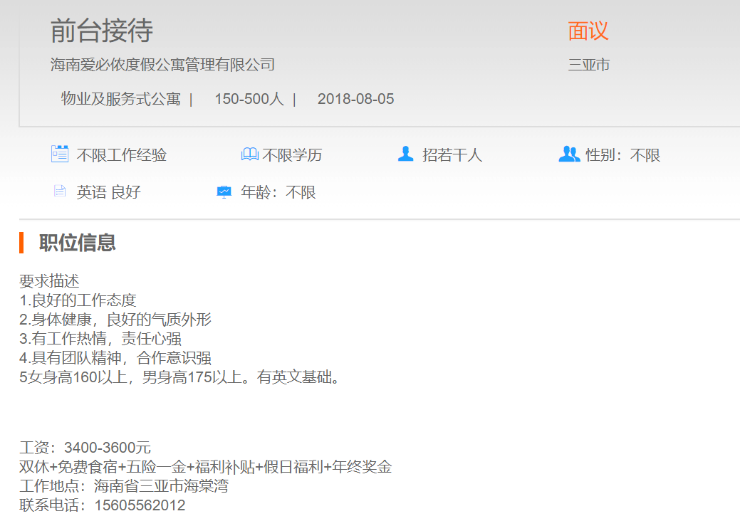 海南爱必侬度假公寓管理有限公司前台接待