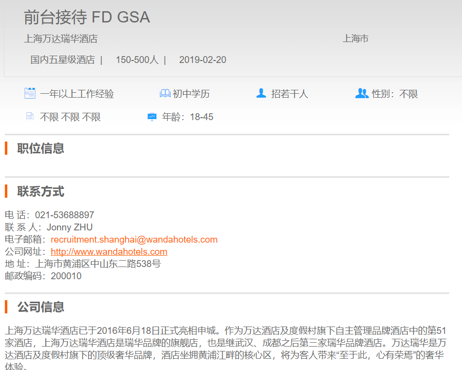 上海万达瑞华酒店前台接待