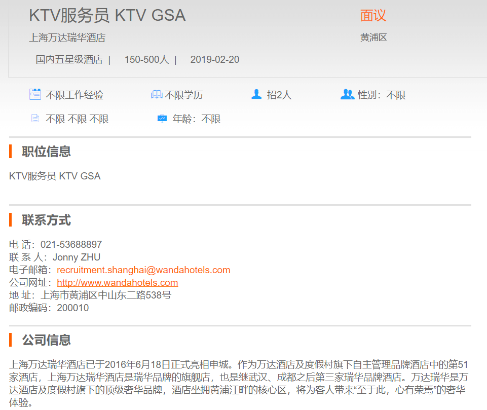 上海万达瑞华酒店KTV服务员