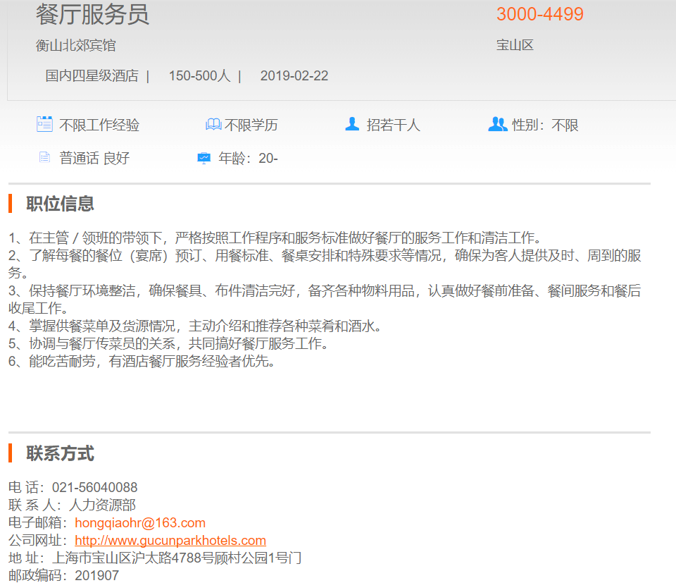 衡山北郊宾馆餐厅服务员