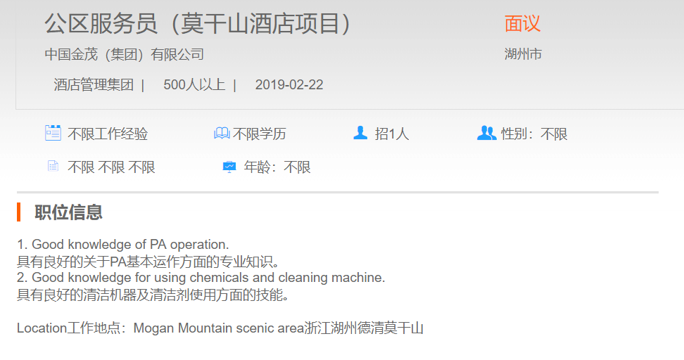 中国金茂有限公司公区服务员