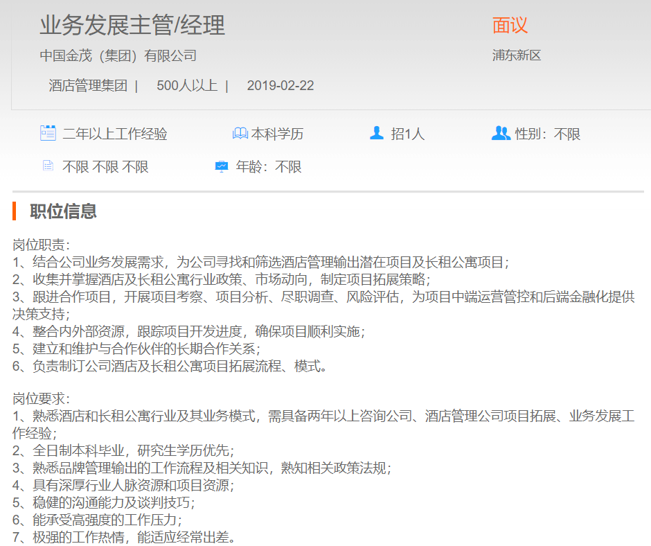 中国金茂有限公司业务发展主管