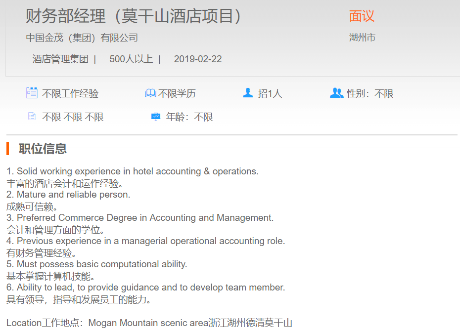 中国金茂有限公司财务部经理