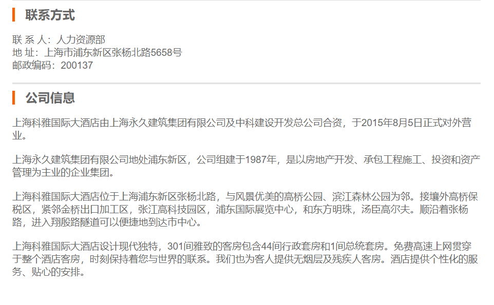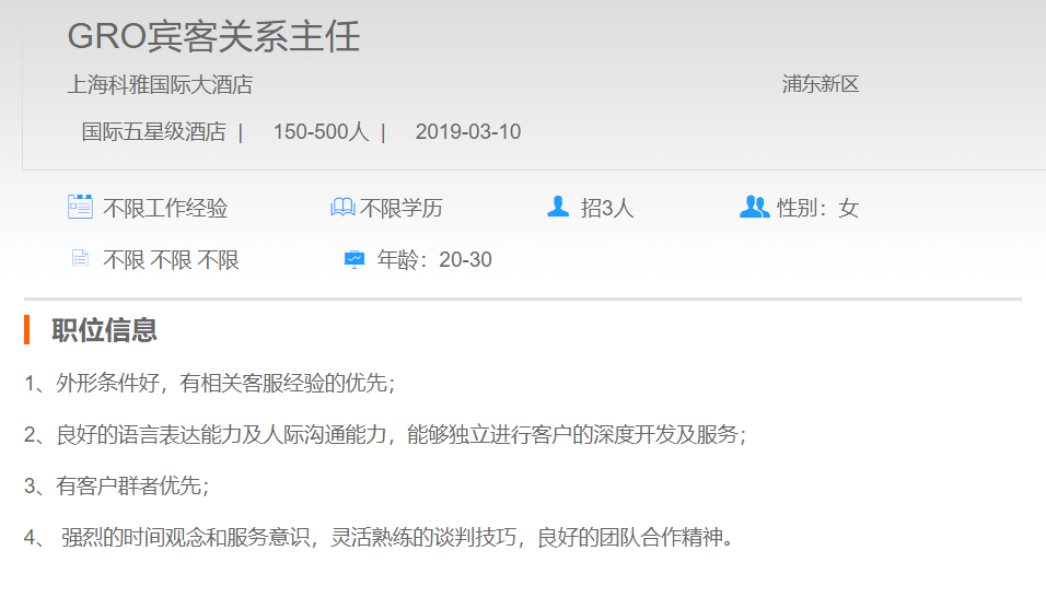 上海科雅国际大酒店宾客关系主任