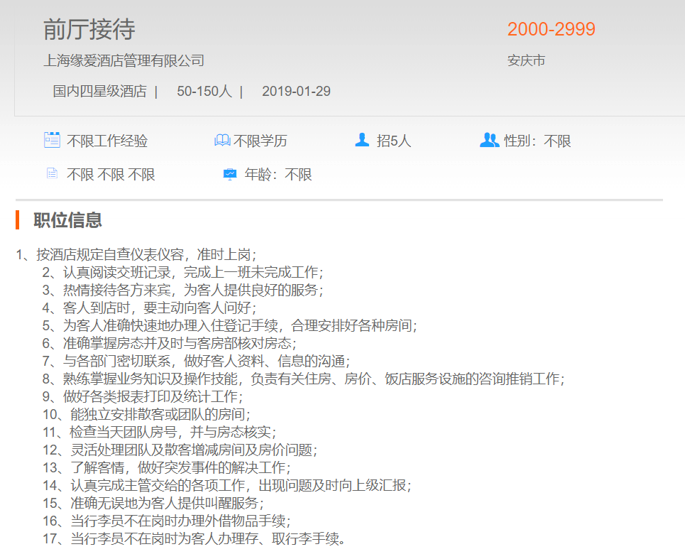上海缘爱酒店管理有限公司前台接待