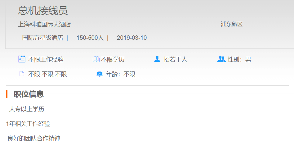 上海科雅国际大酒店总机接线员