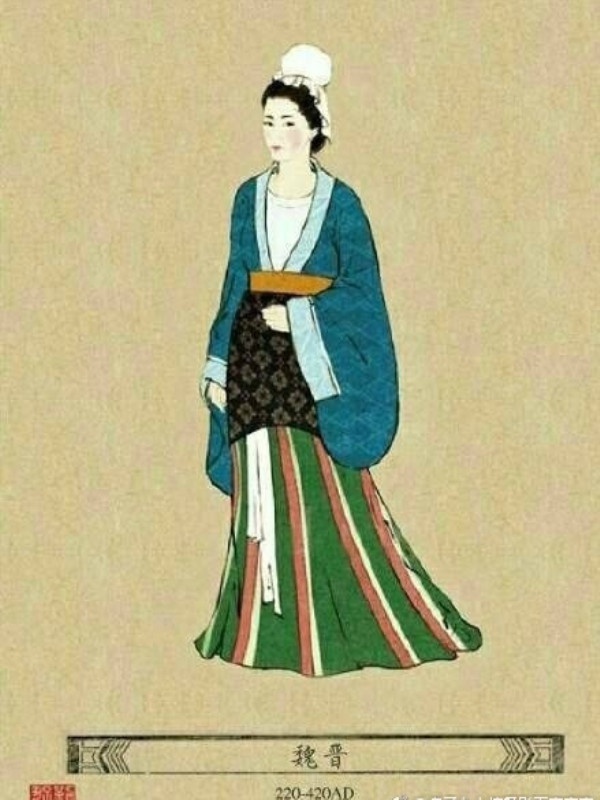 魏晋南北朝时期的服饰,主要以自然洒脱、清秀空疏为特点。男子的服装主要是袖口宽大、不收衣祛约束的衫,妇女服装承袭秦汉的遗俗,在传统基础上有所改进,一般上身穿衫、袄、襦,下身穿裙子,款式多为上俭下丰,衣身部分紧身合体,袖口肥大,裙为多折裥裙,裙长曳地,下摆宽松,从而达到俊俏、潇洒的效果。