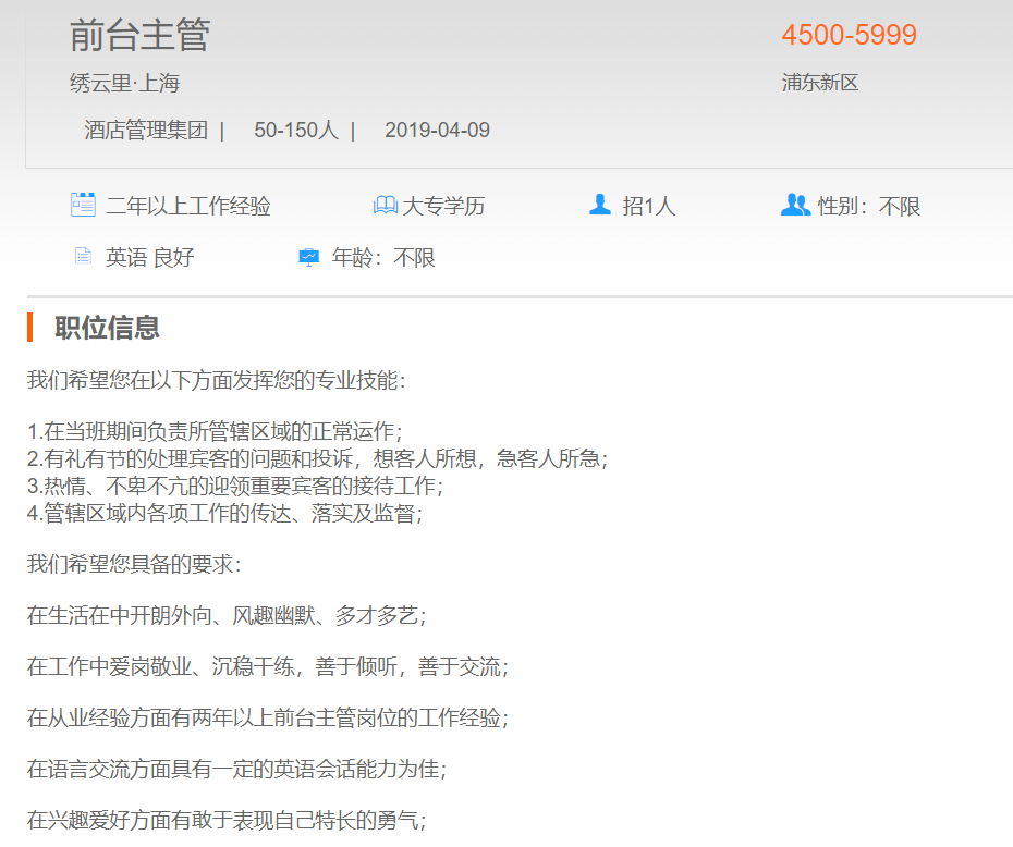 绣云里前台主管