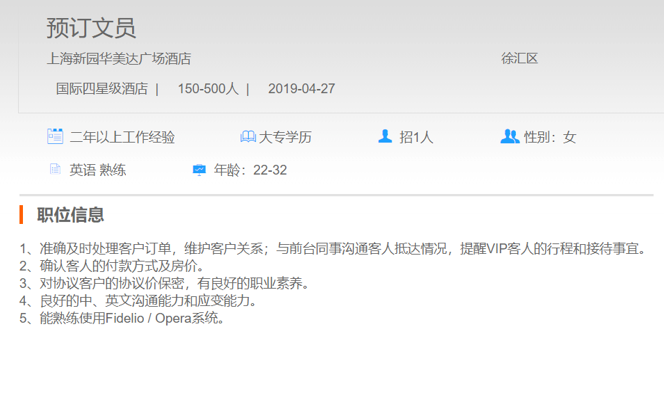 上海新园华美达广场酒店预定文员