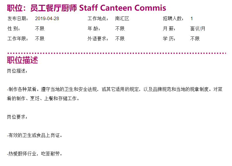 上海滴水湖皇冠假日酒店员工餐厅厨师