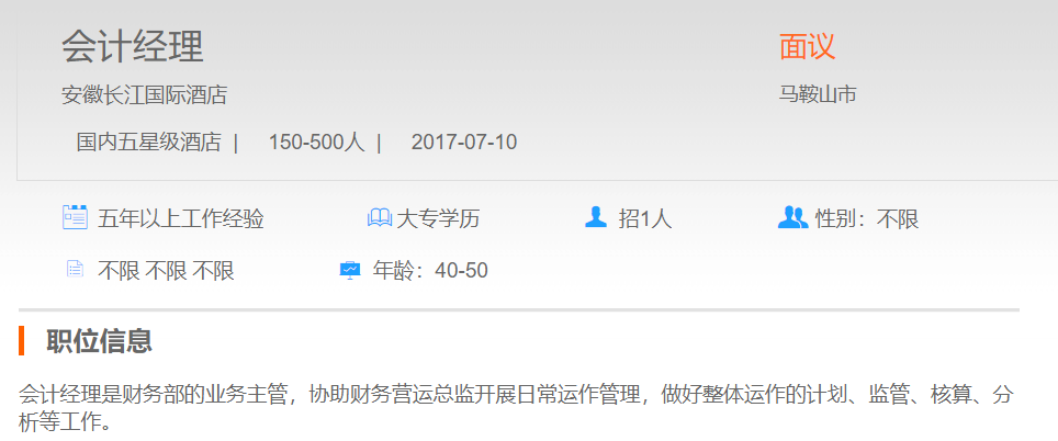 安徽长江国际酒店会计经理