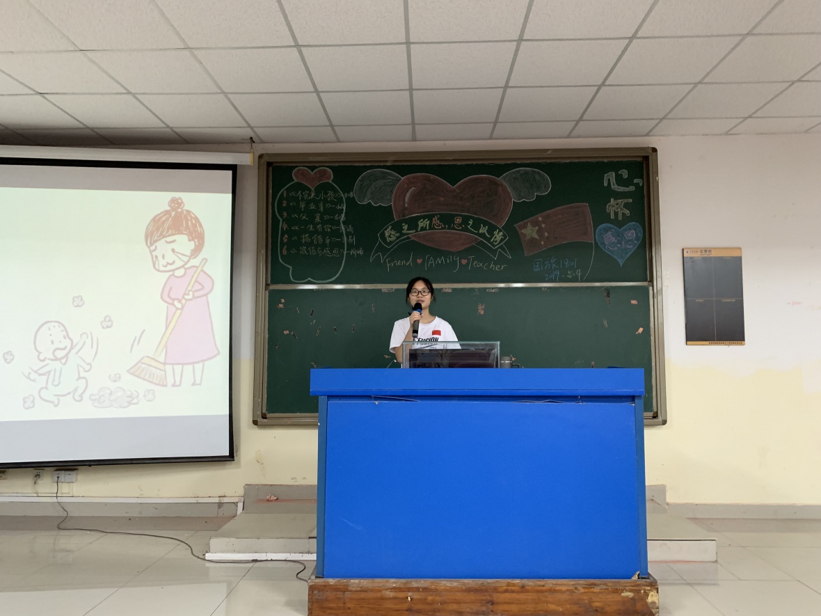 5月4日,在学校的积极推动与思想导师程璐的带领下,秉承着让同学们懂得生命中感恩的意义为主题,我班在书知楼1208教室召开了“感之所感,恩之以情”主题班会。程璐导师和全班同学按时出席了本次班会。经过了近一个月的准备,同学们将精心筹划的班会内容以多种形式展现给大家。