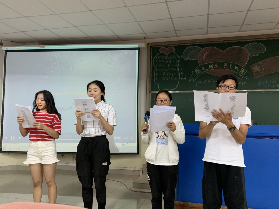 为了调动同学们的积极性、丰富同学们的想象力、充分利用同学们的课余时间,本次主题班会的展现形式新增了话剧、诗朗诵、合唱和小品的新模式,每小组成员在准备中也将自己内心最想表达的东西都展现出来。本次班会还采用抽签的形式,被抽中的同学现场给自己的父母打电话,向自己最亲爱的父母表达心中最深的爱意。