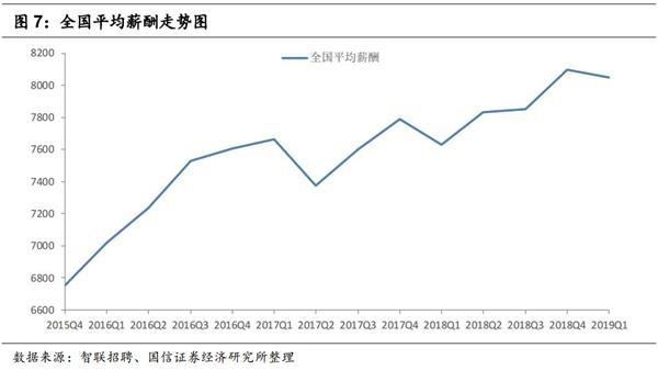 根据智联招聘的数据显示,2019年一季度,全国平均薪酬环比略降46元,为8050元,相较去年同期上升421元,同比涨幅为5.5%。