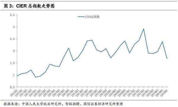 相对于其它类型的企业来说,大型企业的就业压力虽然有所增大,但CIER指数依然高于1,在2019年一季度为1.36,大型企业的优势较为明显。对于中小微型企业的稳就业措施还需大力支持,相信随着减税降费措施的落实,这一类企业生存状况的改善也会有利于其就业形势的缓解。