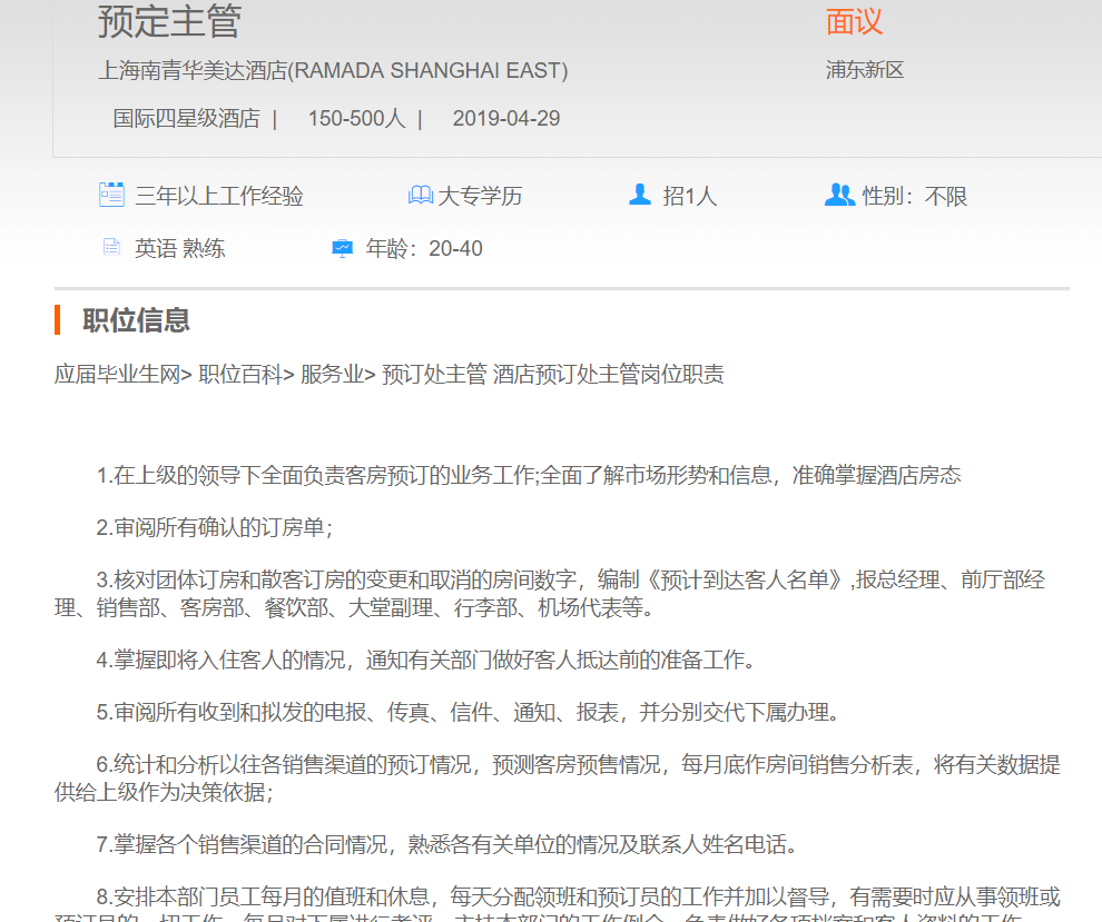 上海南青华美达酒店预定主管