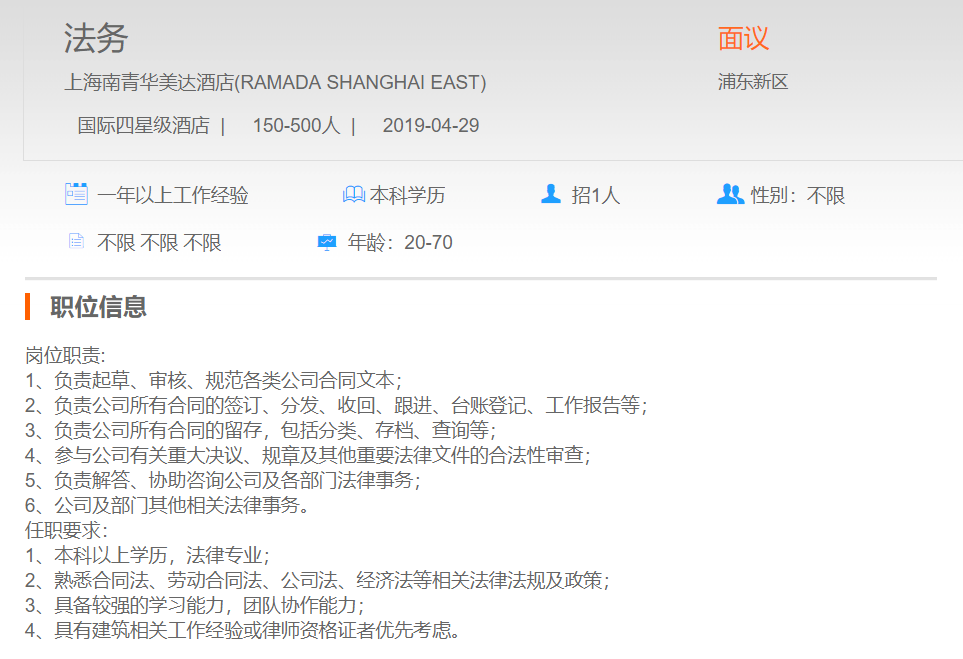 上海南青华美达酒店法务