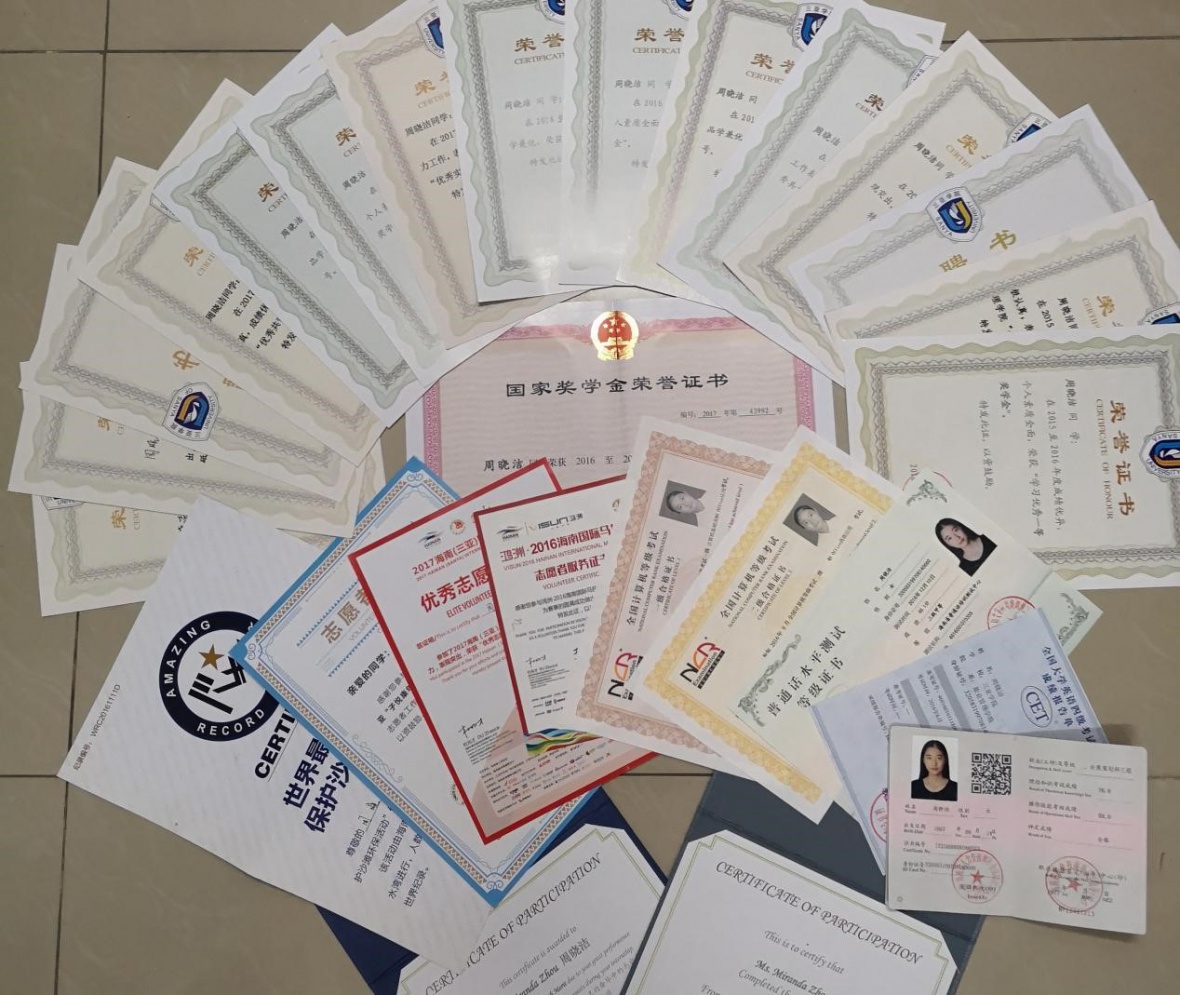 在谈及共产党员的先锋模范作用时,周晓洁同志用四年大学获得的证书向我们展示了她在各个方面的努力。