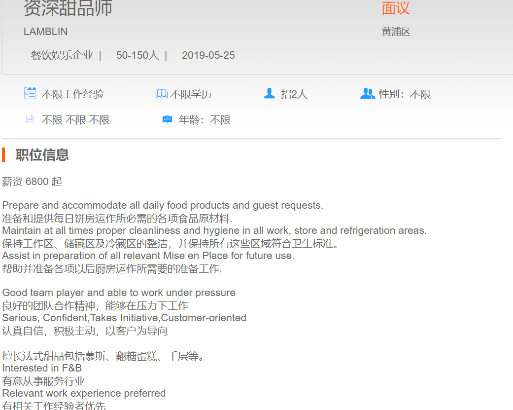 LAMBLIN资深甜品师