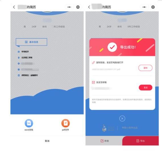 (简历小工具一键转PDF/Word,并快捷转发邮箱功能)