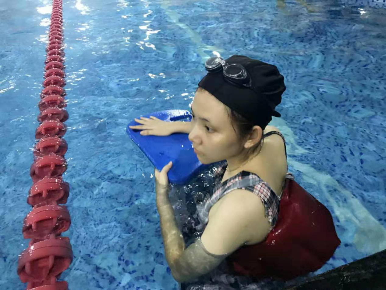 做任何事情都要循序渐进、坚持,学习游泳亦如此。为期六天的游泳培训,李思晔同学有序进行着,她给自己定了一个小目标——克服恐惧,脱离救生圈。每天傍晚7时,李思晔准时上课,经过教练的认真教学、自我领悟与训练,从憋气----到踩水----换气开始,又从憋气----呼吸---划臂---再到腿部动作配合协调。经过几天刻苦练习,李思晔得到教练多次表扬,并实现了从浅水区到深水区的进一步训练。