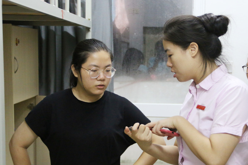 李琴老师特别了解宿舍设施是否完好,重点讲解学校发放的一卡通的使用方式,及时向后勤部反映相关问题,做到切实解决新生入住问题,为新生提供更舒适的宿舍环境。刘文琦老师作为新生思想导师,更加关注与新生家长的沟通与交流,加强家校沟通,为此建立了家长微信群,随时保持与学生家长的沟通,共同为孩子的成长成才保驾护航。