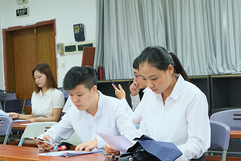 学生们在认真听负责人宣讲