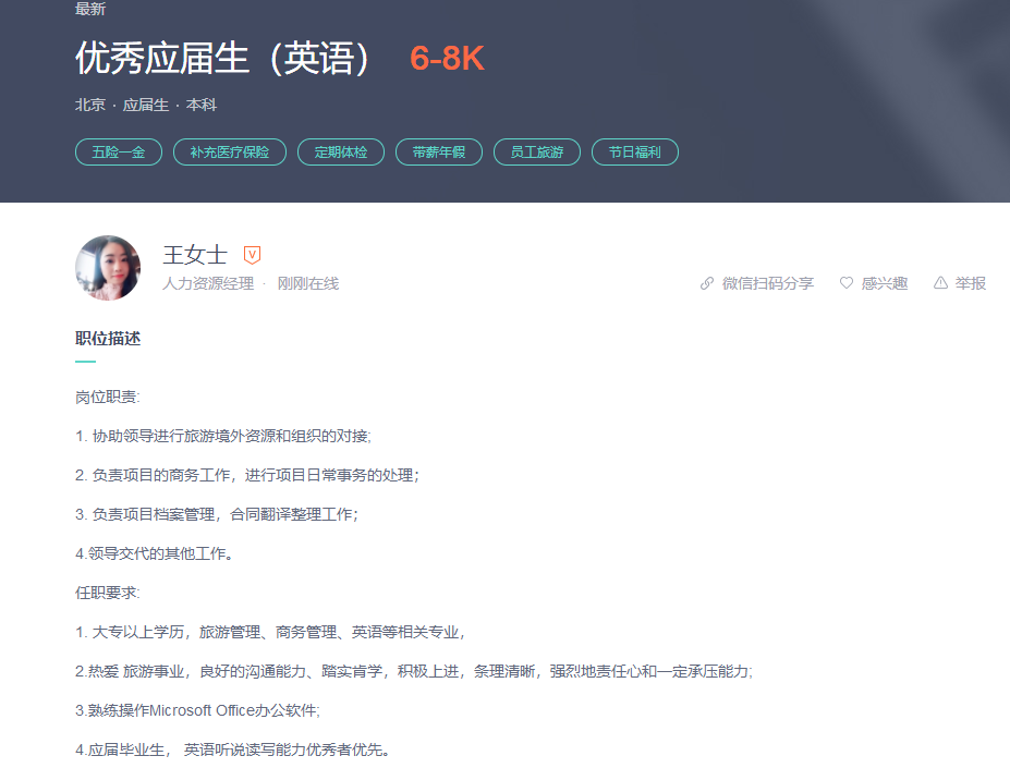 凯撒旅游优秀应届生(英语)