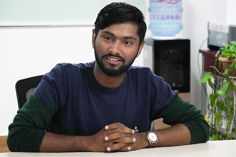 首先,Ali与同学们用流畅的英语互相问候并简单介绍了自己、讲述了部分巴基斯坦的地方特色,表示很高兴以交换生的身份来到中国学习,也很喜欢三亚的生活。参与本次活动的同学也依次做了自我介绍。在此期间,Ali针对同学们提及的专业、兴趣爱好等进行相关的提问,现场的气氛欢快愉悦。对部分害羞的同学,Ali鼓励他们放开嗓子,大声发言。更有积极的同学,大方地展示了自己的才艺。随后,Ali表示希望与同学们就海南的美食、文化、风景进行交流互动。同学们积极响应,分享自己在三亚最喜欢的事物、最近生活中发生的趣事、近期的学习状况等。