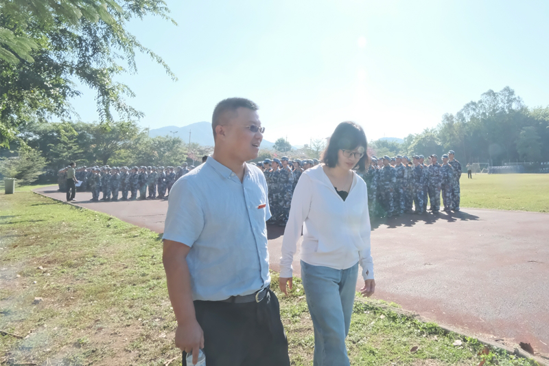 党总支副书记王翔与团委副书记吴小柳前往训练方阵