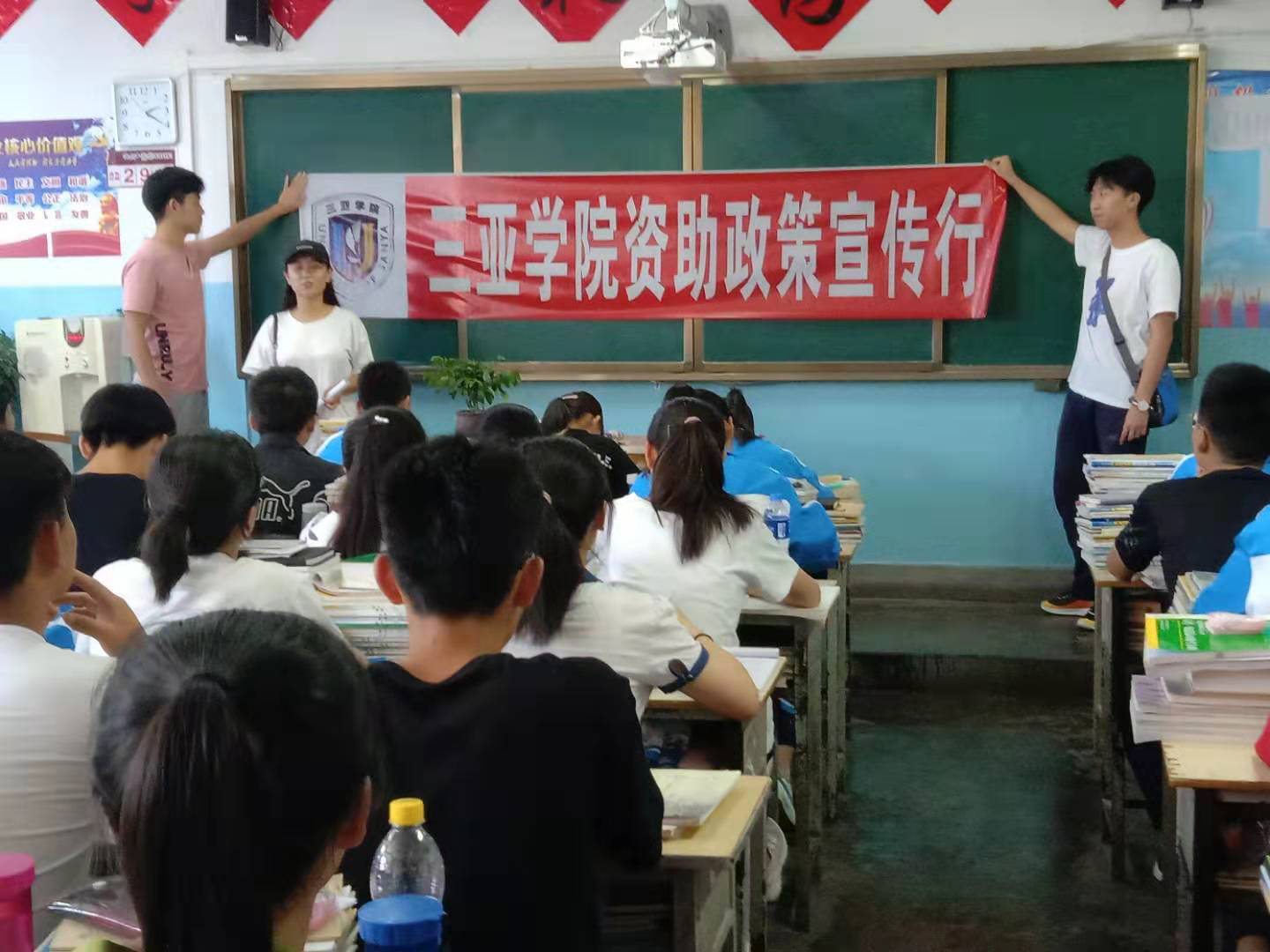 余勤表示走进那所充满三年回忆的校园,看见无数人在为等待已久的六月而奋笔疾书。为让更多地学生不因学费问题而放弃自己心仪的大学,我走上讲台为学生们展现国家资助政策和三亚学院的资助政策,首先为学生展现自己事先做好的宣传片,再以PPT的形式为学生一一讲解,学生们热情洋溢的笑容与我侃侃而谈形成一幅和谐的画面。从学生们的疑问中表现出:缺乏对资助政策的了解、存在担心学费问题不敢迈步的现象。作为我校资助宣传大使,带给学生们来自最温暖的问候,让其安心学习、健康成长,扫除经济上的顾虑。一张张挂着笑容的面庞,映射出当年的我们,希望他们面对这场已打响的战役不忘初心、奋力拼搏,他们所期待的六月终将会如期而至。