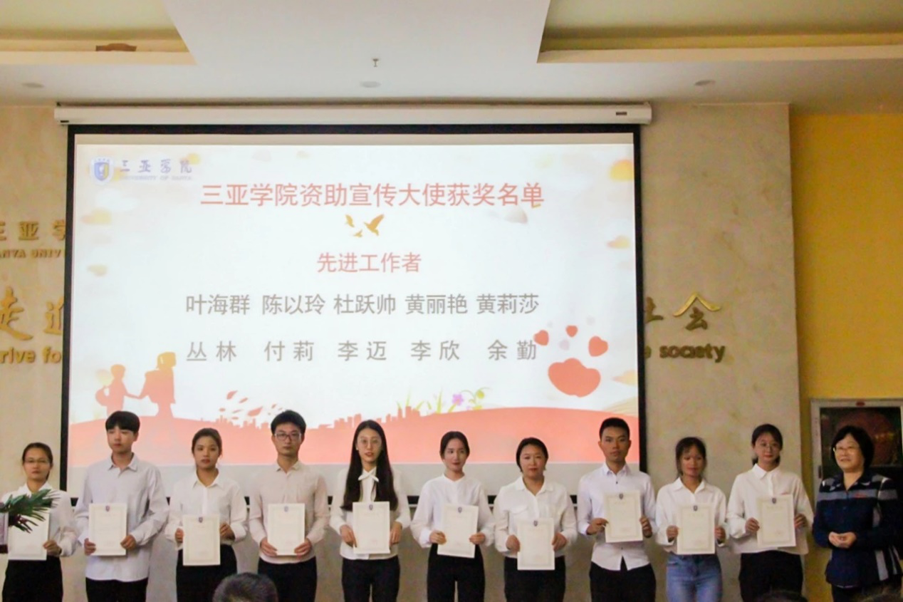 我校于11月27日16时,在白鹭苑东湖厅开展资助大使表彰大会,其中我院付莉、杜跃帅、黄莉莎、余勤被评为“先进工作者”,田春雪、石盼盼被评选为“勤奋大使”。在担任资助大使的宣传过程中,他们收获颇多。