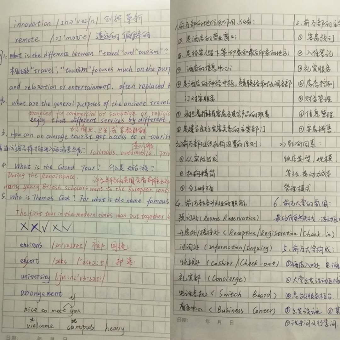酒店1801班刘明鑫同学学习笔记