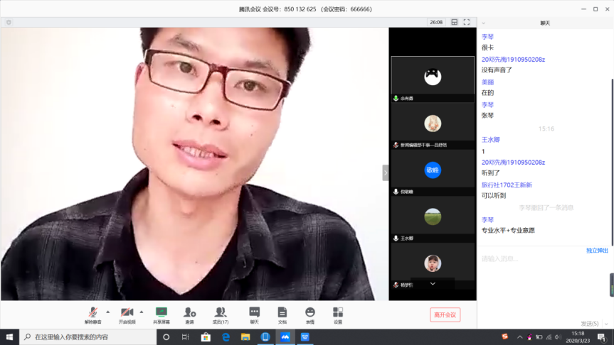随着2020年考研初始成绩的公布,我院已有一批优秀的学生成功进入复试。为助力学生在复试中取得更加优异的成绩,我院学业导师王水卿于3月23日下午15时组织线上考研复试指导讲座,我院邮轮专业负责人余有勇老师受邀为同学们进行指导,学院团委副书记李琴老师以及2020届即将复试的毕业生以及部分有意向考研的17级学子参加讲座。