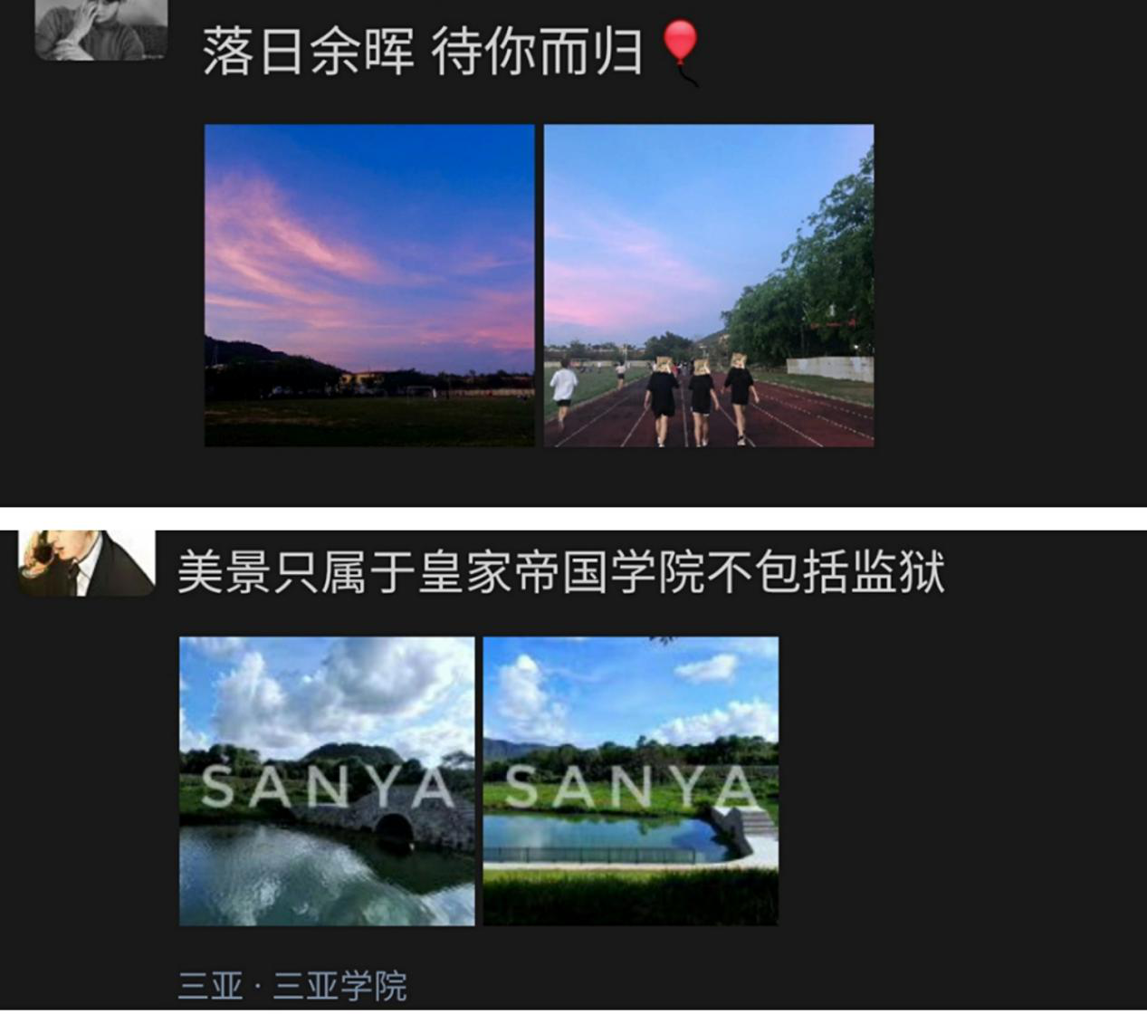 还有很多没有返校的同学通过朋友圈来重温三亚学院的日落。除了同学们以外,这日落好像也在讲些话:“等待疫情解除,我们等你回家”。我们能够安全返校,离不开学校防疫工作的支持,我们更加的珍惜重返校园的时光,积极配合要做好个人防范工作和学校防疫。