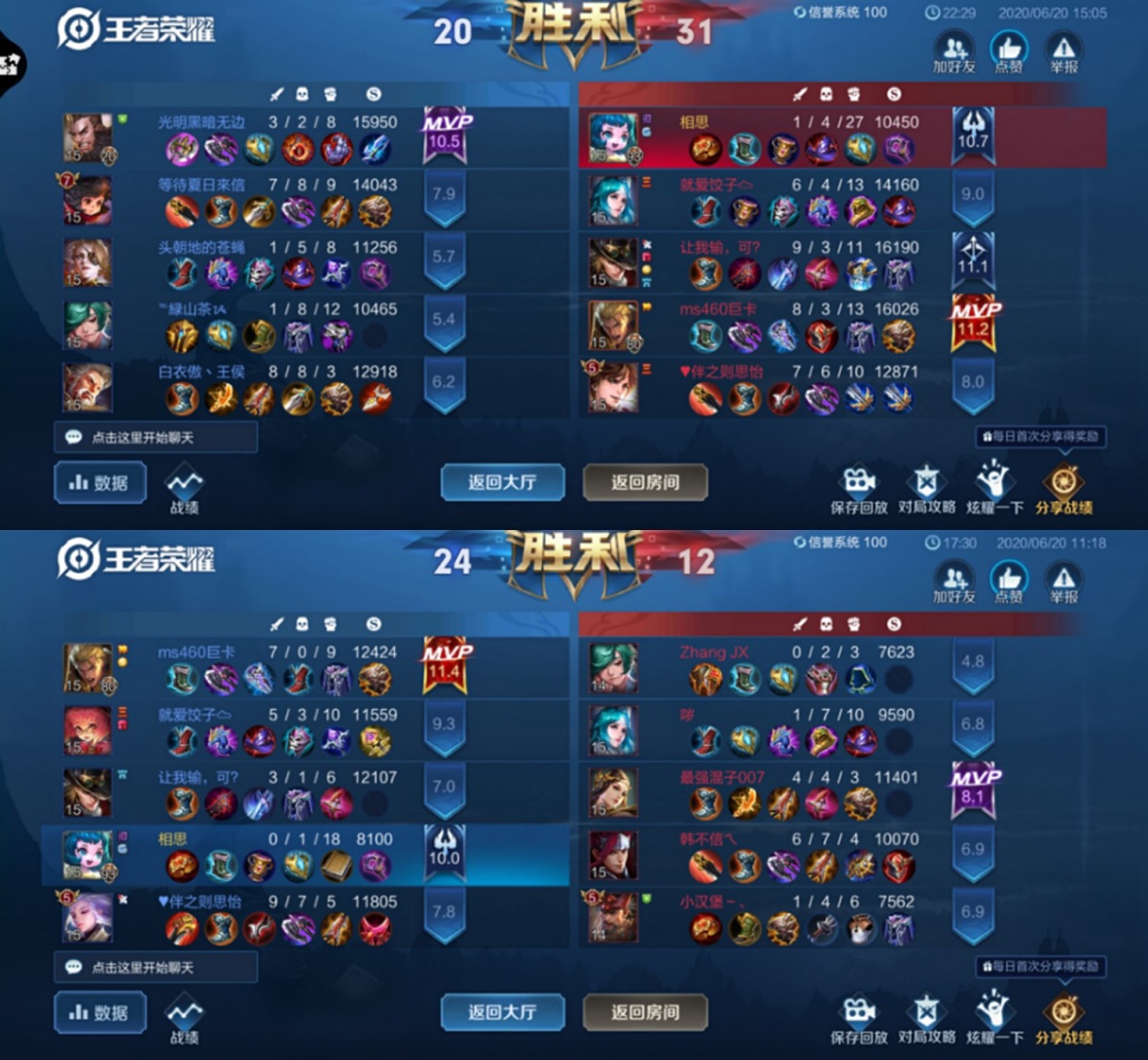 两支队伍分别命名为“能躺绝不c”,“全员混子”。队伍“能躺绝不c”一路披荆斩棘,“过五关斩六将”,但在32进16的比赛中遇到强劲对手,止步于32强。另一支队伍“全员混子”勇猛得闯到了16强,在前两局的晋级赛也赢得较为顺利,但随着比赛的逐渐白热化,在16进8的比赛中不慎失败,遗憾止步于16强。