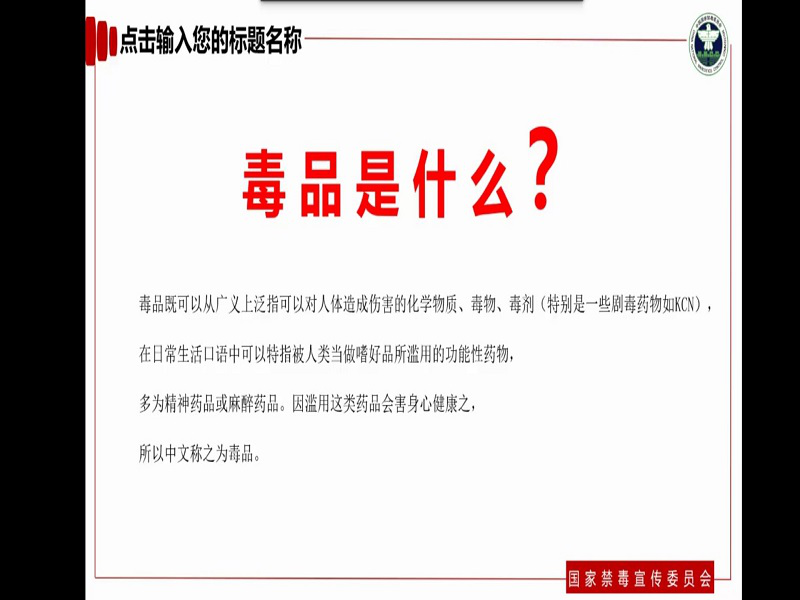 预防教育为主要任务的禁毒宣传教育工作是禁毒工作的治本之策,是事半功倍之举。珍爱生命,远离毒品。