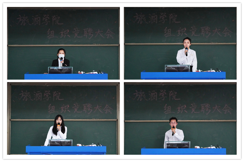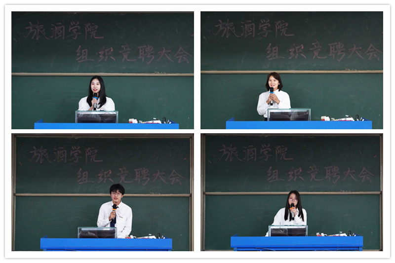 组织竞聘大会旨在鼓励四大组织成员积极参与竞选,发掘组织中的潜在人才,不断推动组织进步,优中择优,增强组织核心优势。本次大会依照团委、学生会、自律委员会、通讯社的顺序依次进行竞聘宣讲。四个组织的竞聘成员分别从工作成绩、工作不足、工作思路、未来规划等方面竞选宣讲,表述自己对工作的热爱和自身积极负责的工作态度。会议期间,团委副书记李琴对竞聘干部进行仔细地记录点评。